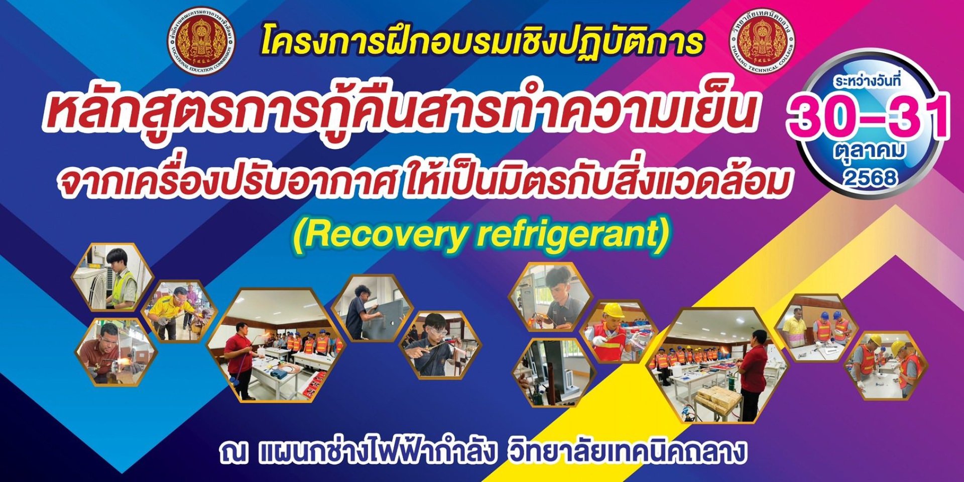 นางสาวกชกร บุษราภรณ์ ผู้อำนวยการวิทยาลัยเทคนิคถลาง มอบหมายให้ แผนกวิชาไฟฟ้ากำลัง วิทยาลัยเทคนิคถลาง จัดโครงการฝึกอบรมเชิงปฏิบัติการหลักสูตร การกู้คืนสารทำความเย็นจากเครื่องปรับอากาศให้เป็นมิตรกับสิ่งแวดล้อม (Recovery Refrigerant) เพื่อเสริมสร้างความรู้ ความเข้าใจเกี่ยวกับ กระบวนการจัดการสารทำความเย็นอย่างถูกวิธี ตามหลักมาตรฐานสากล และส่งเสริมแนวคิดการอนุรักษ์พลังงานและสิ่งแวดล้อม